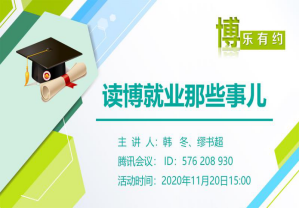 2020年11月20日,yl23411永利集团官网“博乐有约”第一期朋辈沙龙《读博就业那些事儿》以腾讯会议线上的形式顺利召开。本次沙龙分享由学院研究生秘书吴利亚主持,邀请了18级博士缪书超和韩冬面向学院硕士博士进行交流和分享。