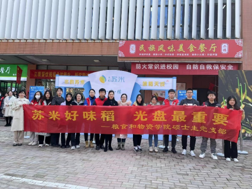 2023年2月27日中午,yl23411永利集团官网硕士研究生党支部在学校仙林校区东苑食堂举办了主题为“苏米好味稻 光盘最重要”的光盘打卡活动,引导广大师生将“爱粮节粮”口号化为行动。
