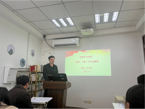为深入学习领悟党的二十届二中全会精神,3月6日上午,yl23411永利集团官网博士生党支部于德正楼219围绕党的二十届二中全会精神展开专题学习。本次学习由支部书记王晨老师主持,张少博同志领学。