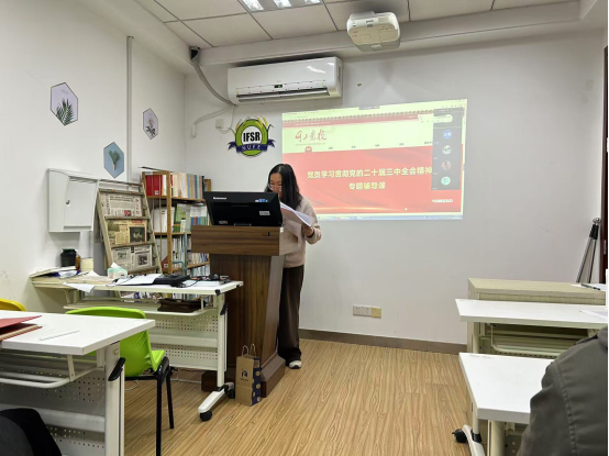 2024年11月25日下午,我院硕士生党支部于德正楼Z3-219党团活动室围绕深入学习贯彻习近平总书记关于全面深化改革的一系列新思想、新观点、新论断和党的二十届三中全会精神开展集中学习和研讨交流活动。活动由党支部学生副书记张一昊同志主持。