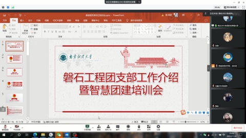 首先,陈扬昕同学从团员先进性建设、团支部规范化建设、激活基层团支部活力三方面介绍了磐石工程团支部工作的主要内容,包括发展团员的流程、团员证的管理、“双述双评”、“三会两制一课”、支部团员大会、支部委员会会议等工作的开展,并介绍了团支部手册与“智慧团建”系统的记录使用方法。