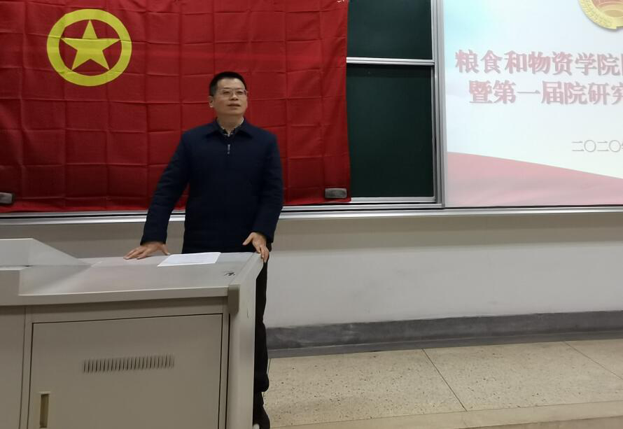 随后,学院第一届研会主席田叹和团支部书记代表凃正健分别在会上做了任职发言。会议最后,学院党总支书记张圣兵做总结讲话,就学院团学工作进行了指示和部署,也对全体粮物青年送去了勉励与希冀。支委会全体委员、第一届院研会全体成员合影留念。