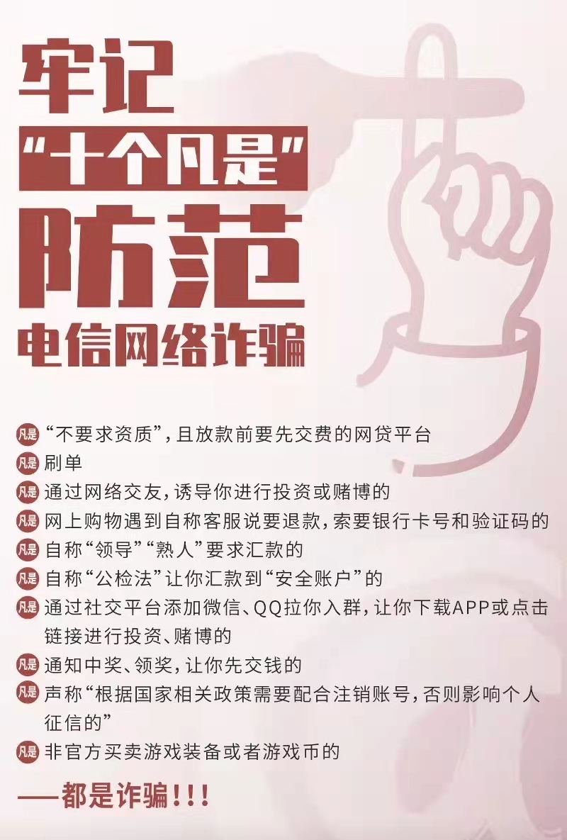 【反诈提醒】牢记“十个凡是”·防范电信网络诈骗