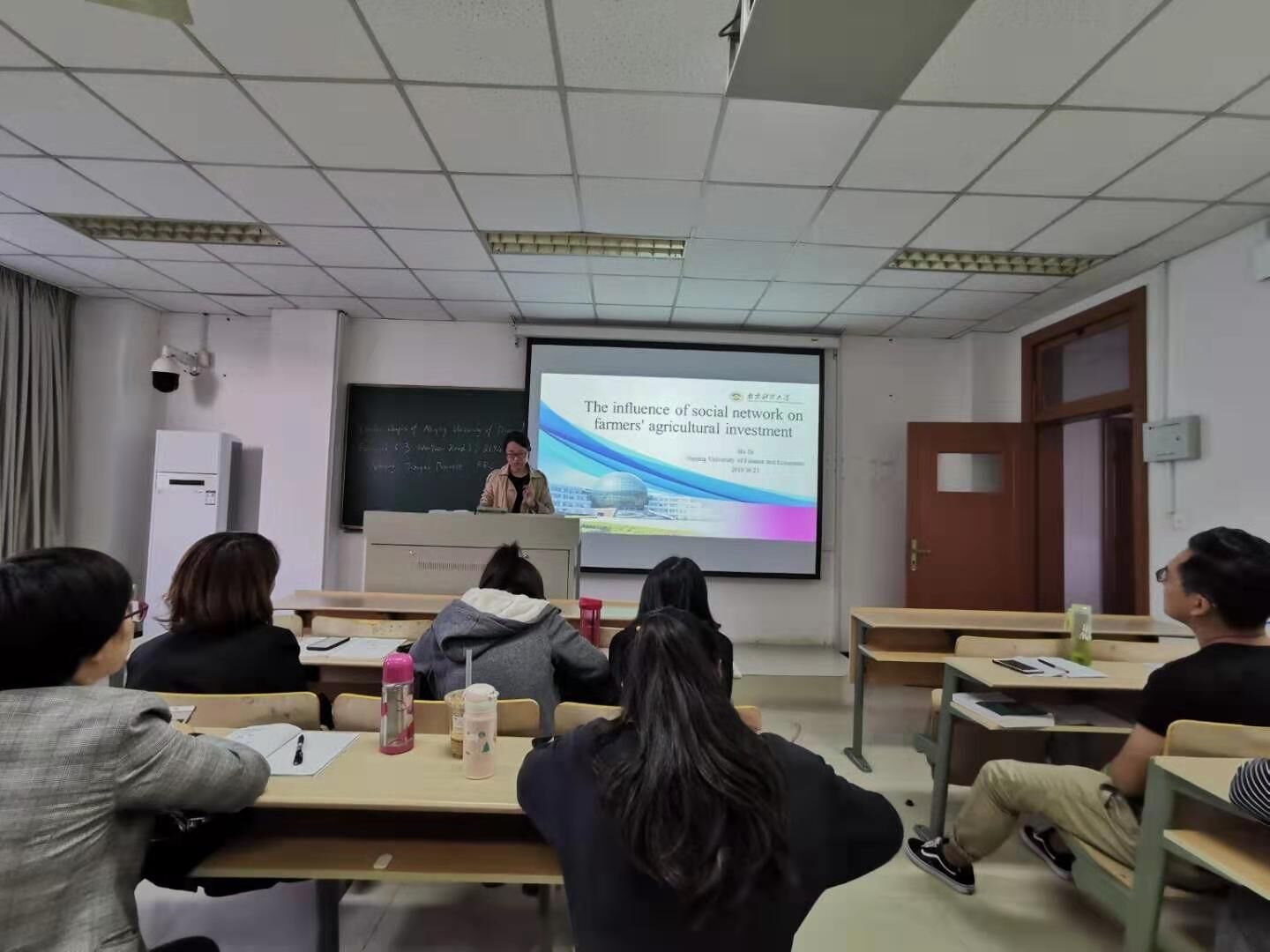 博士研究生胡迪的汇报题目为“The influence of social network on farmers’ agricultural investment”,分析当前农村社会关系网络对农户农业生产投资有何影响?如何影响?认为在当前正式制度尚未健全的背景下,社会网络可以通过扩展融资渠道、提高信息传播效率和农户要素获取能力等路径对农户生产投资行为产生促进作用。