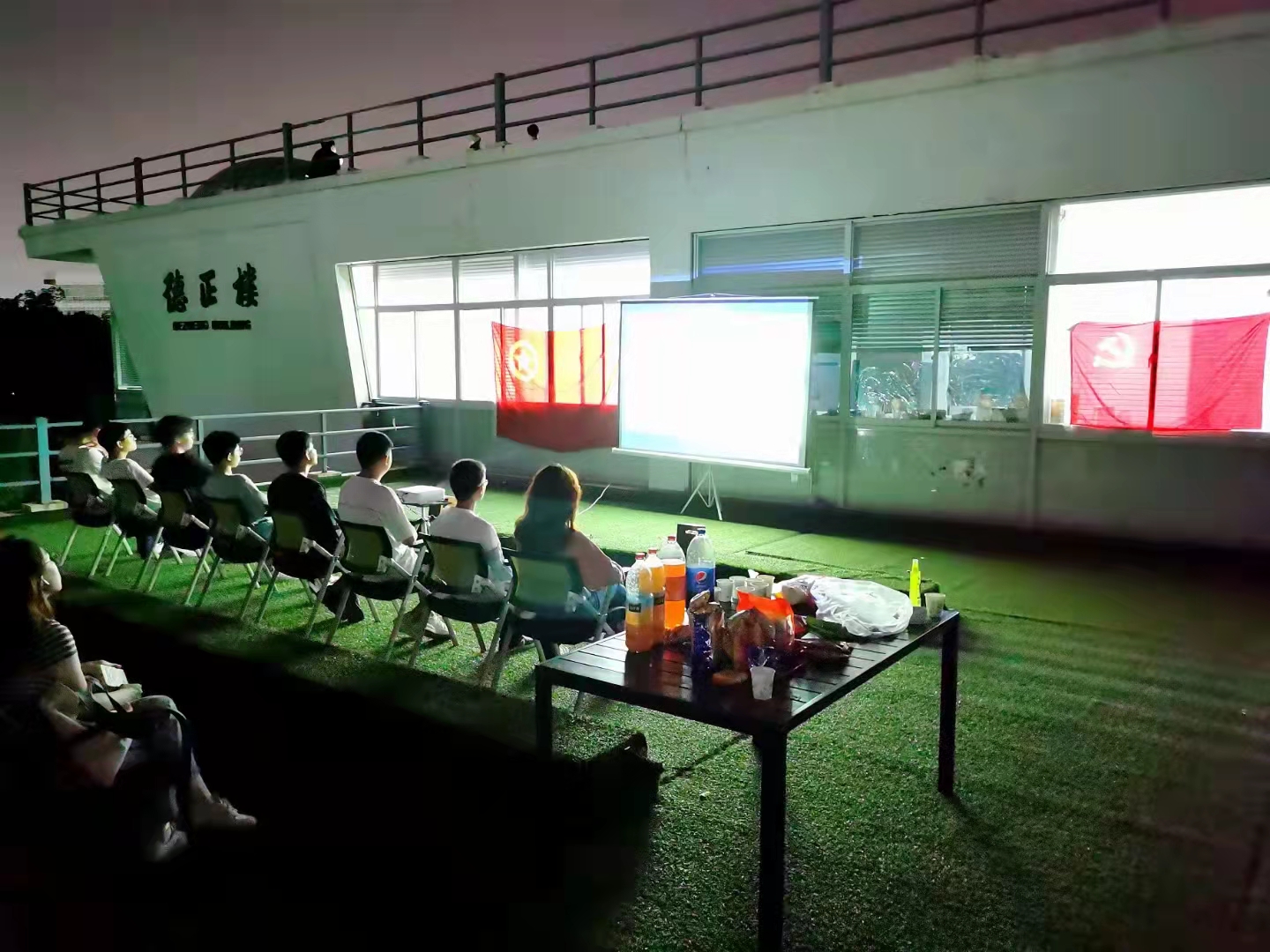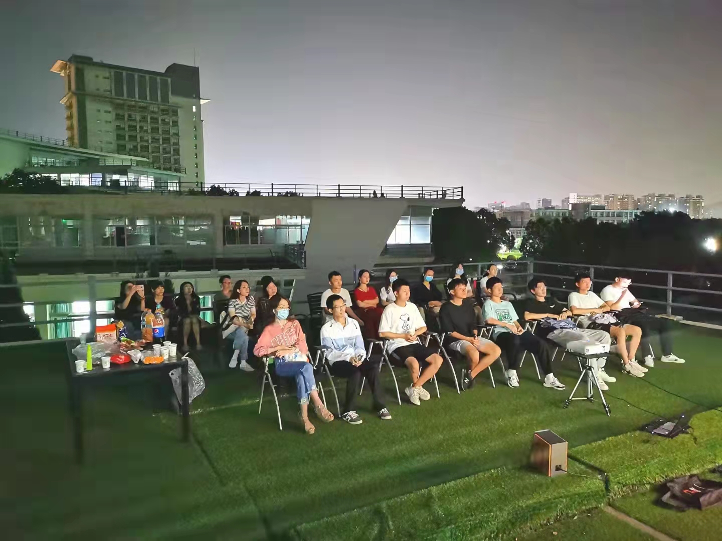 为丰富已返校学生国庆假期的校园文化生活,充分利用国庆节开展国情教育和新生始业教育,帮助2021级硕博新生充分了解中国粮食产业的发展历程,yl23411永利集团官网于10月1日晚在我校仙林校区德正楼二楼南侧户外露台举行国庆专场露天电影展映活动,本次展映所选影片为纪录片《中国粮的奇迹》。
