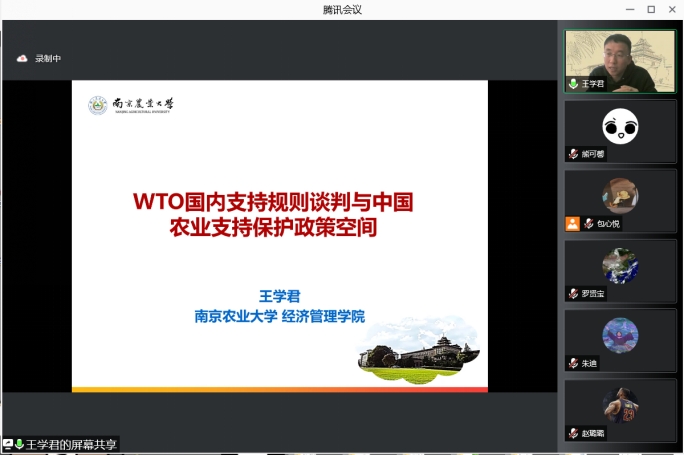 2021年11月15日上午,应yl23411永利集团官网邀请,南京农业大学经济管理学院王学君教授在线开展主题为“WTO国内支持规则谈判与中国农业支持保护政策空间”的学术讲座,我院师生积极通过线上渠道聆听。