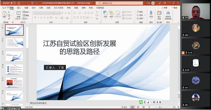 2021年12月6日上午,江苏省社会科学院区域现代化研究院副院长丁宏研究员应邀为我院开展了主题为“江苏自贸试验区创新发展的思路及路径”的学术讲座。本次讲座采取线上方式进行,我院硕士生、博士生和部分青年教师积极参与聆听。