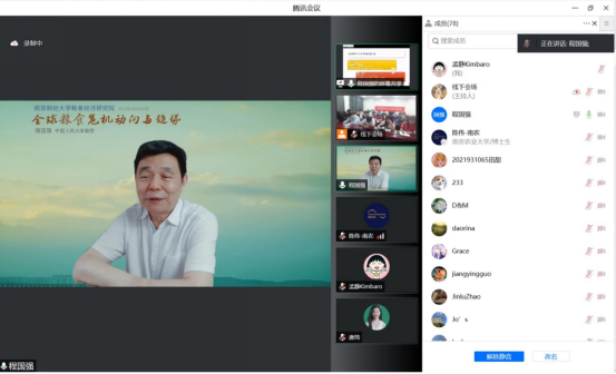 2022年6月6日下午,中国人民大学教授、国家粮食安全战略研究院院长程国强教授在仙林校区德经楼Z1-307教室以线上线下相结合的形式为我院师生开展了主题为“全球粮食危机的动向与趋势”的学术讲座。讲座由我院院长曹宝明教授主持,我院硕士生、博士生和青年教师积极到场或线上参与。