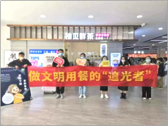世界粮食日和国家粮食安全宣传周期间,yl23411永利集团官网在仙林校区开展了“光盘行动”奖励计划。学院研会派出多支志愿者小分队在仙林校区各大食堂随机寻找文明用餐的“追光者”,对就餐“光盘”的同学发放了精美小礼品,还制作了“做文明用餐的‘追光者’”主题横幅在餐厅入口处组织签名活动倡导同学们自觉抵制餐饮浪费行为,培养适量点餐的良好饮食习惯。