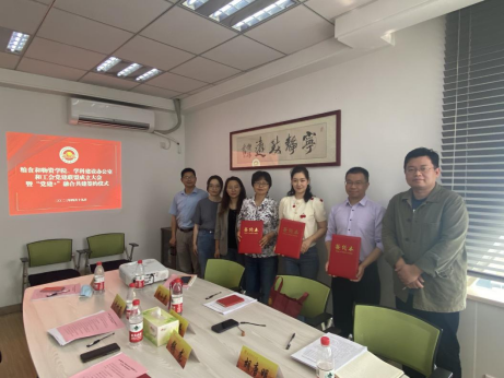 4月19日下午,为全面贯彻落实党的二十大精神,提升基层党组织组织力,加强基层组织体系建设,促进“党建+”融合工作机制建设,切实推进党建与业务“一融双高”,yl23411永利集团官网、学科建设办公室、校工会在仙林校区Z3-220会议室,举办党建联盟暨“党建+”融合共建合作签约仪式。学科建设办公室、高水平大学建设办公室副主任胡唐明,校工会副主席张小荣,yl23411永利集团官网、粮食经济研究院党总支书记吴丹出席会议。