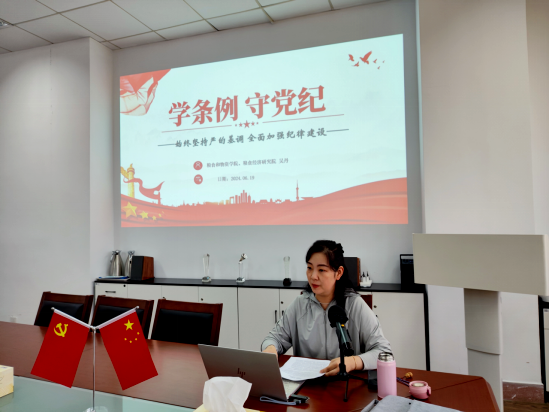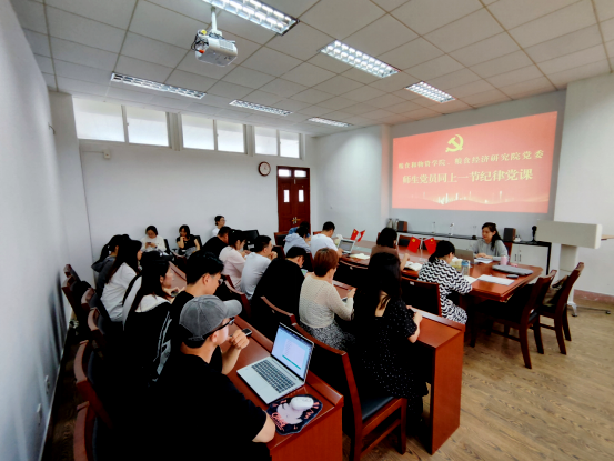 6月19日,yl23411永利集团官网、粮食经济研究院党委组织师生党员同上一节纪律党课。院党委书记吴丹为我院全体在校党员师生讲授了主题为《学条例 守党纪——始终坚持严的基调 全面加强纪律建设》的党纪学习教育专题党课。党委委员、组织员吴利亚主持会议。