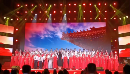 南京财经大学为热烈庆祝中华人民共和国七十五周年华诞,于2024年9月29日晚,在体育馆举行南京财经大学庆祝中华人民共和国成立75周年“我和我的祖国”大型合唱活动。