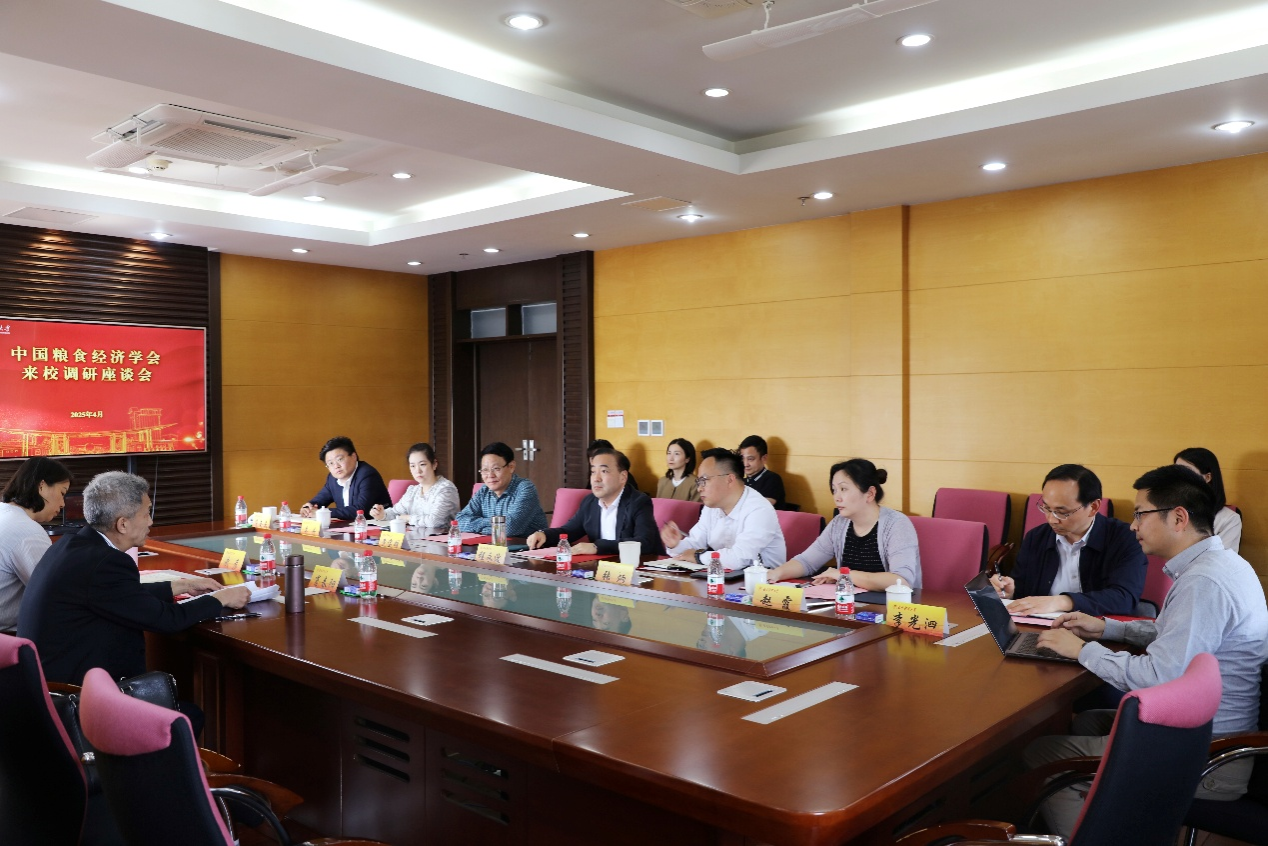 4月23日下午,中国粮食经济学会常务副会长肖春阳一行来我校调研交流,座谈会在仙林校区行政楼1101会议室召开。校长程永波、副校长张炳出席座谈会。党政办、党委宣传部、学科办、科学研究院、我院相关负责人和教授代表参加座谈会。