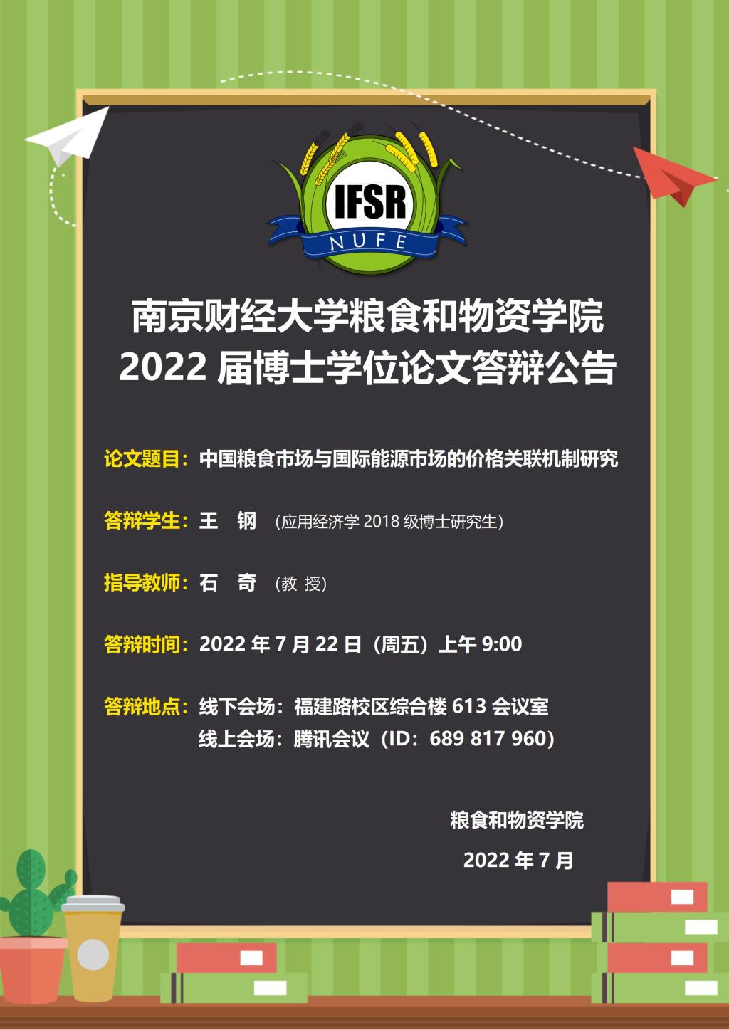 2022届博士研究生学位论文答辩公告(一)