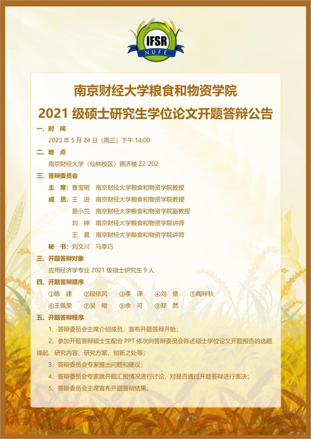 yl23411永利集团官网2021级硕士研究生学位论文开题答辩公告