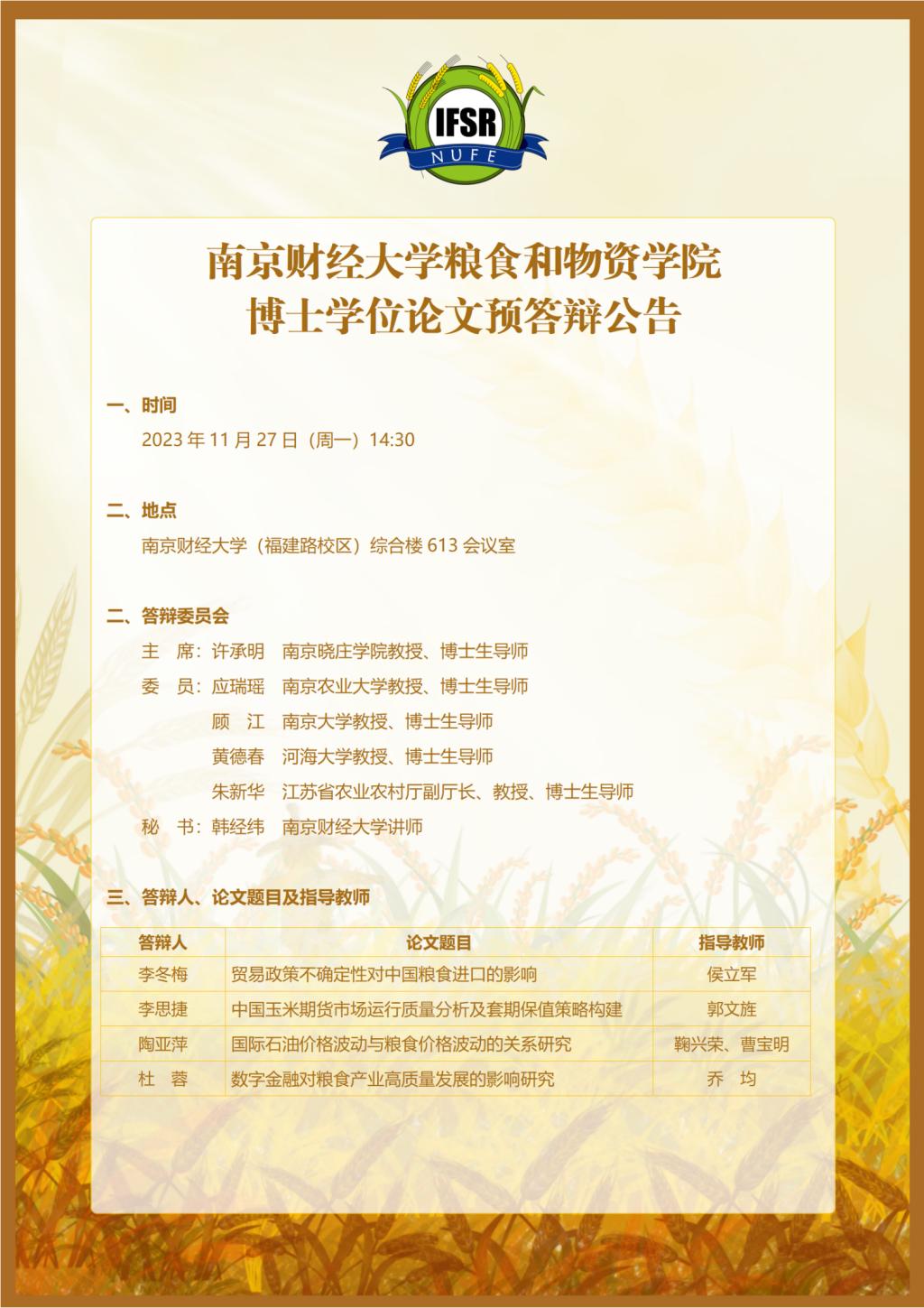 yl23411永利集团官网2023秋博士学位论文预答辩公告