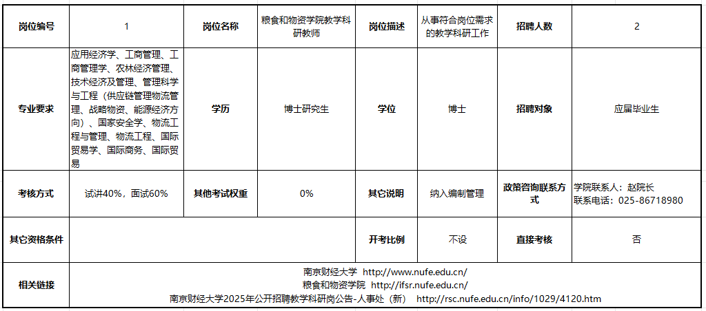 yl23411永利集团官网是国内普通高校中首个面向我国粮食和物资行业开展人才培养、科学研究和社会服务的学院。前身是1988年国家商业部批准设立的南京粮食经济学院粮食经济研究所( 2008年更名为南京财经大学粮食经济研究院)。作为国内高校中最早设立的聚焦粮食安全战略、粮食流通与物资储备、粮食产业发展等研究领域、为国家粮食宏观调控、物资储备管理、粮食政策科学化提供决策支持的专门机构,我院长期以来持续面向粮食和物资储备行业开展人才培养、科学研究、行业服务和决策支持,为国家粮食安全和现代粮食流通产业发展做出了积极贡献,在全国粮食行业有着广泛影响和良好声誉。为更好地选拔优秀适岗人才,充实人才队伍,优化师资结构,我院现面向社会公开招聘优秀人才,其中教学科研岗3名,师资博士后3名现将相关情况介绍如下: