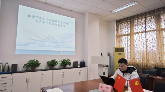 2024年12月11日上午,学院2024年第11期“青年教师学术沙龙”在仙林校区艺术楼402会议室顺利开展。李宁老师分享了题为“粮食安全目标的约束效应:生产责任的集中与强化”的研究成果。